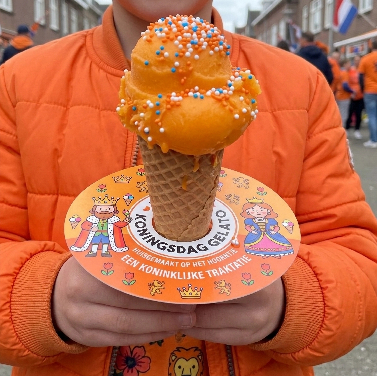 De IJsvanger is een papieren schijf met een uitsnede in het midden, speciaal gemaakt voor ijshoorntjes. Door het ijsje erdoorheen te steken, beschermt de schijf de hand tegen kou en druipend smeltwater. Voor jou als ondernemer of organisator is het iets anders: tien minuten aandacht voor jouw merk, in de hand van je klant.